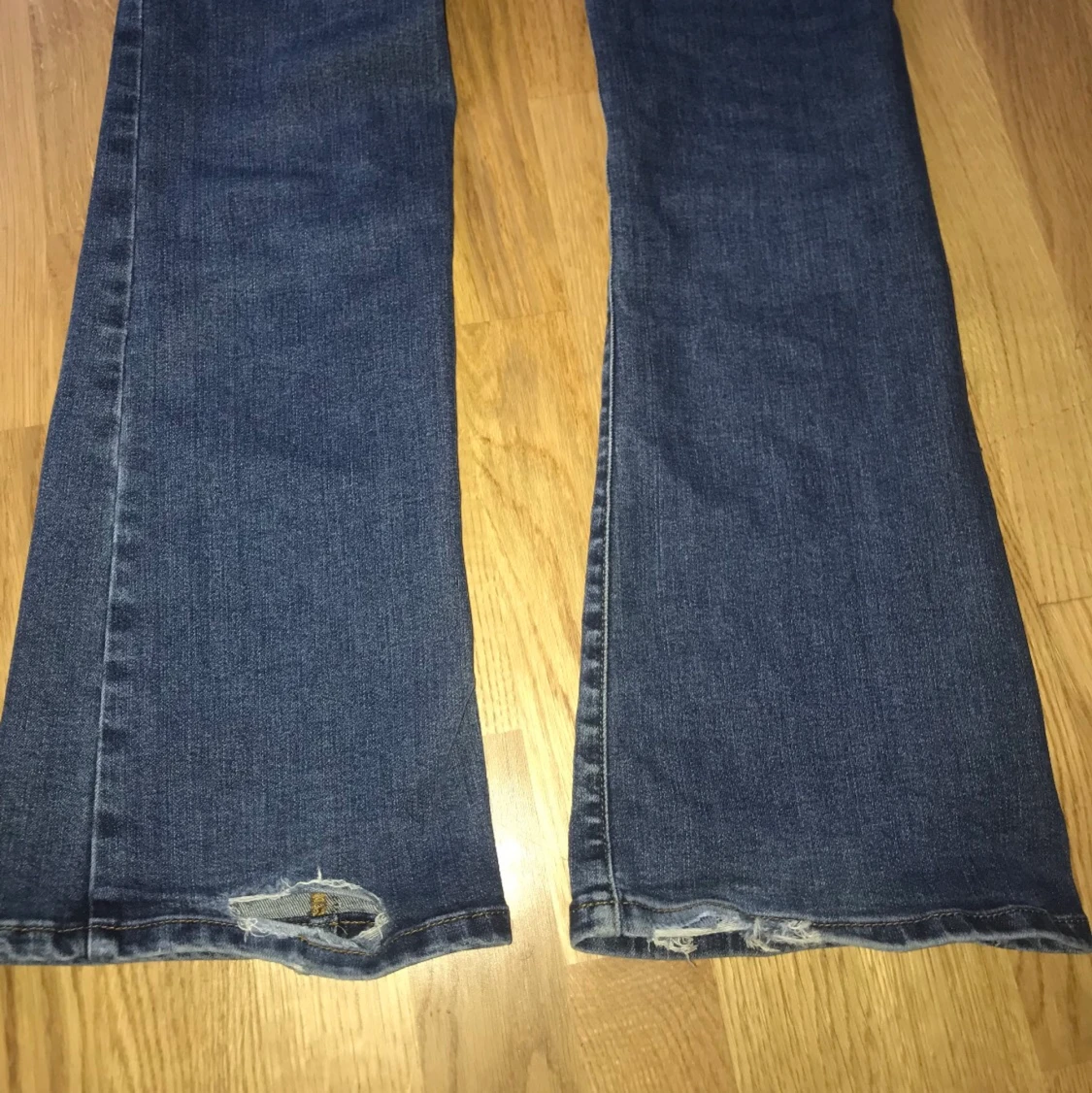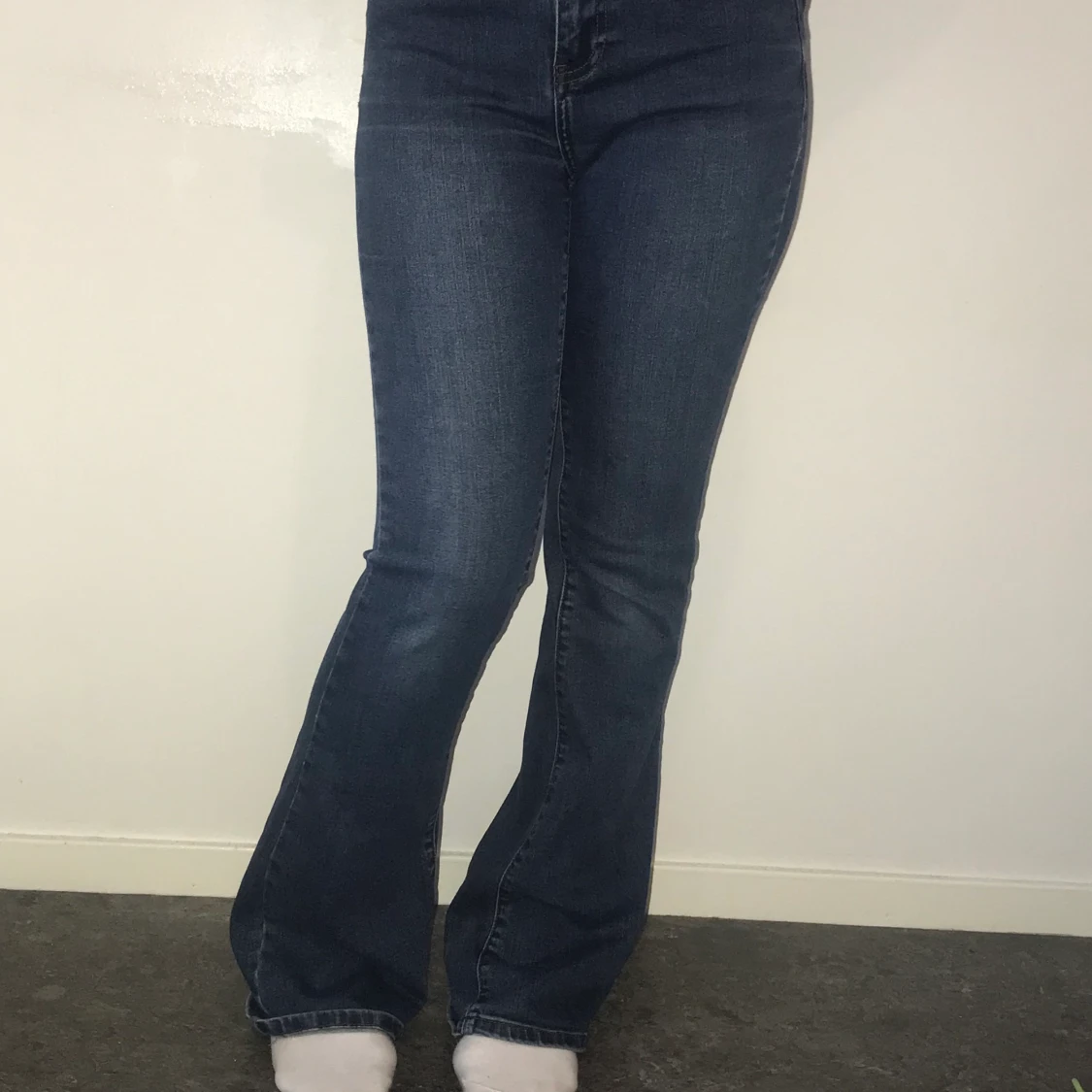 Nu säljer jag mina mellan midjade jeans byxor, de är utsvängda byxor och är i storlek S/38, i färgen marin blå!! Dock är den sönder och har ett hål längst nere av byxorna pågrund av att byxorna är för långa för mig! Dessutom syns det inte mycket<3