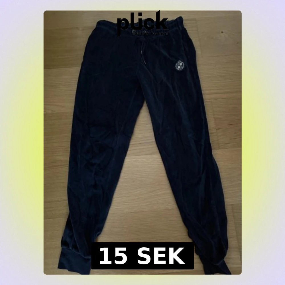 Snygga mörkblå mjukisbyxor från JH Collection by Hööks i storlek S. Byxorna har ett mjukt sammetstyg, snörning i midjan och en broderad logga på höger sida. Perfekta för chill eller träning, med ribbade muddar vid bensluten. 80% bomull, 20% Polyester.