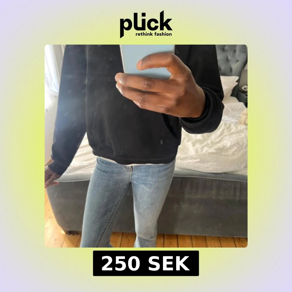 Säljer ett par ljusblå jeans med bootcut passform. och normalhög midja. Perfekta för en avslappnad och stilren look. storlek s/xs