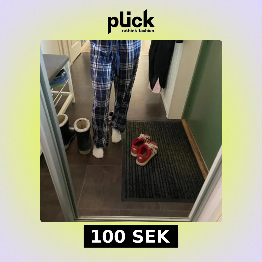 Säljer ett par bekväma blå och vit rutiga byxor med snörning i midjan. Perfekta för en avslappnad dag hemma. Byxorna har en loose passform och är tillverkade i ett mjukt material.