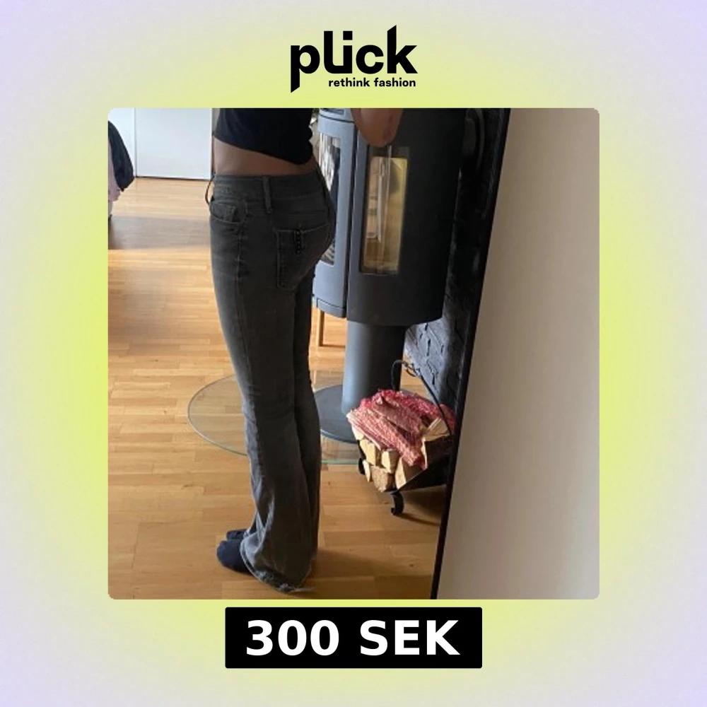 Grå bootcut jeans Tall - Säljer ett par gråa jeans med bootcut-modell med relativt låg midja!💓 dem är uppsprättade längst ned så dem passar lite längre tjejer🫶 jag är 173! midjemått: 34cm | Innerbenslängd: 82cm | Grenlängd: 21cm