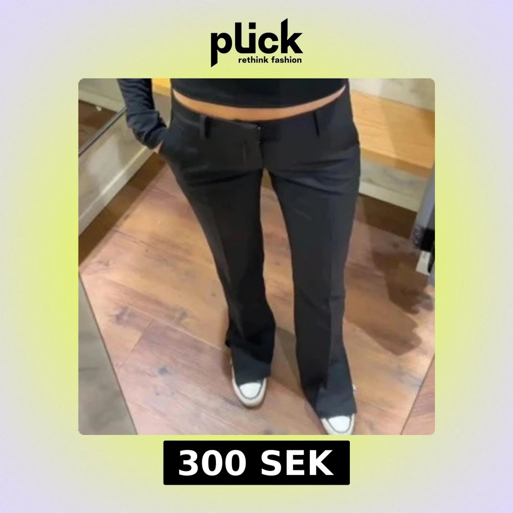 Från bikbok! Har 2 par i olika modell skicka vid intresse så skickar jag bild! Snygga svarta kostymbyxor med låg midja och bootcut-stil. Perfekta för en stilren look. Byxorna har en dragkedja och knappar framtill. Hör av er vid frågor!🥰