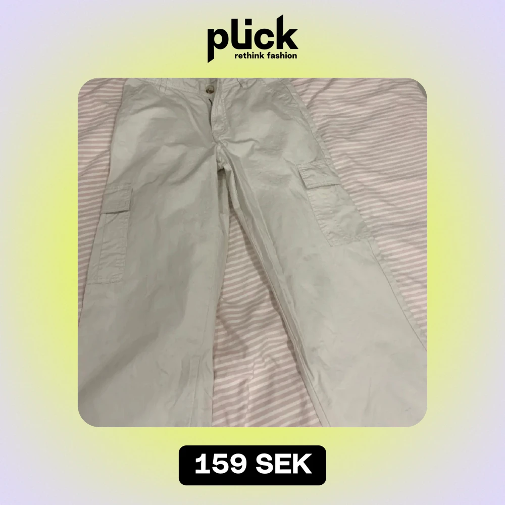 Säljer ett par beige cargobyxor i mycket skick. De har flera praktiska fickor på sidorna och bak. Dom sitter framför allt bra runt midjan och är riktigt sköna. Har aldrig haft dom ute utan dom har bara testats.