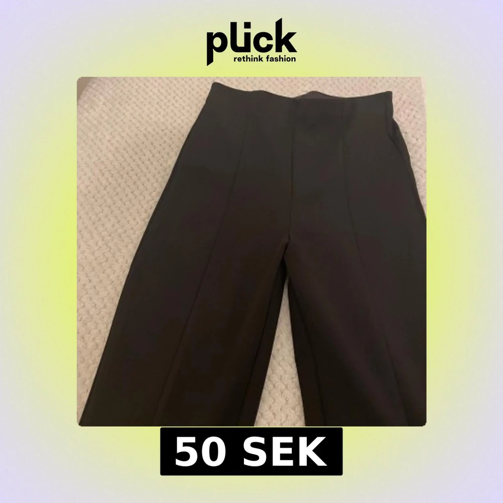 Snygga svarta kostymbyxor med hög midja och raka ben. Byxorna har pressveck framtill för en clean och stilren look. Perfekta att styla med en oversized skjorta eller en tight topp.