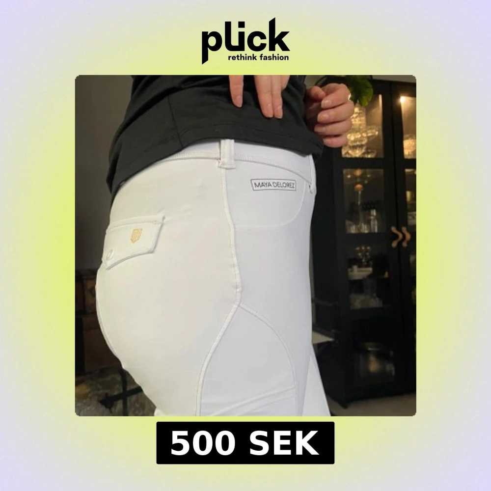 Snygga vita ridbyxor från Maya Delorez med diskret mönster och logotypdetaljer. Byxorna har en tight passform och är tillverkade i ett stretchigt material för optimal rörelsefrihet. Perfekta för ridning med stilren design och praktiska fickor.