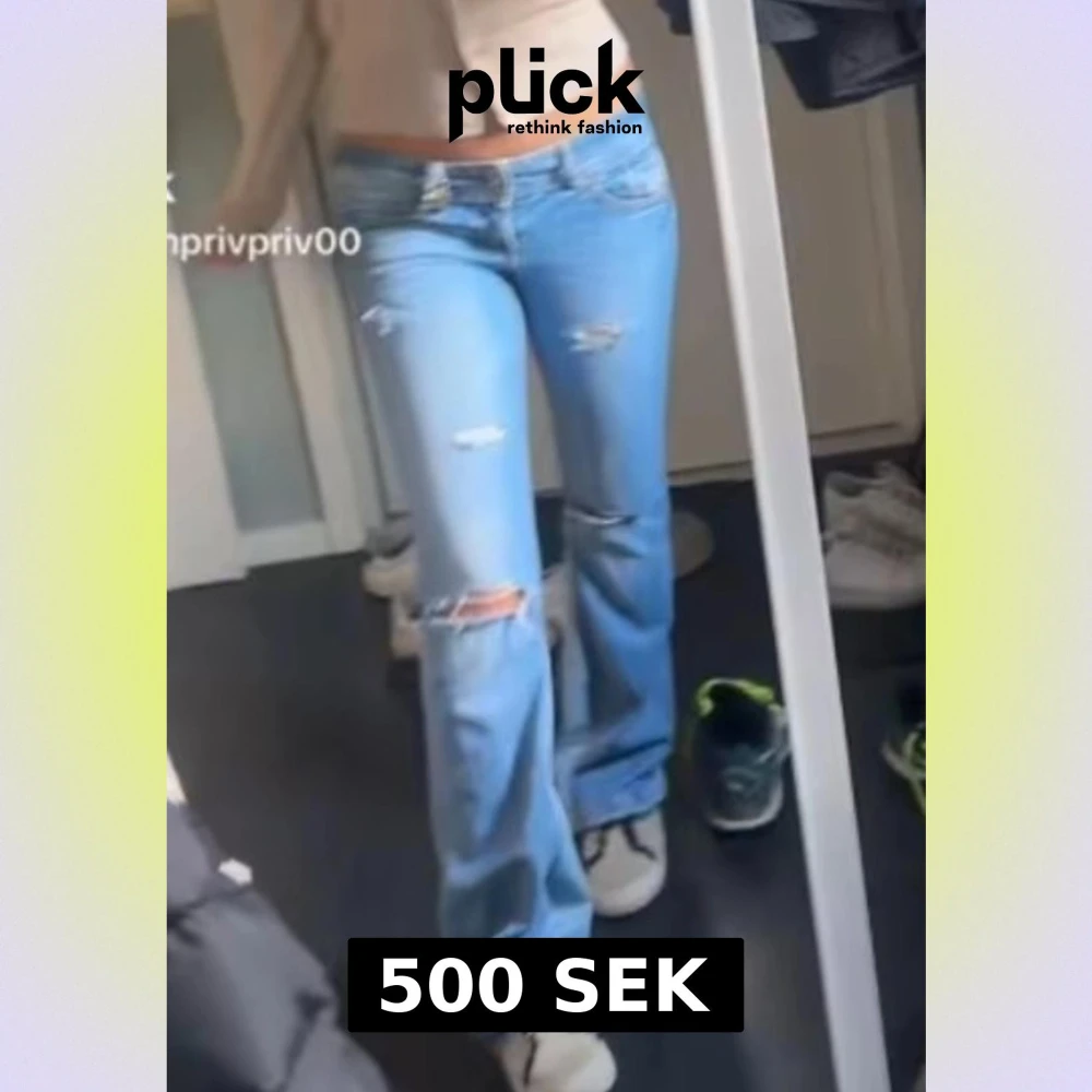Säljer ett par ljusblå bootcut jeans från Esprit med slitna detaljer och snygga broderade bakfickor. Jeansen har låg midja och klassisk femficksdesign. Materialet är jeans med en mjuk tvättad känsla och fransad nederkant. Jeansen har midjemått 37❤️