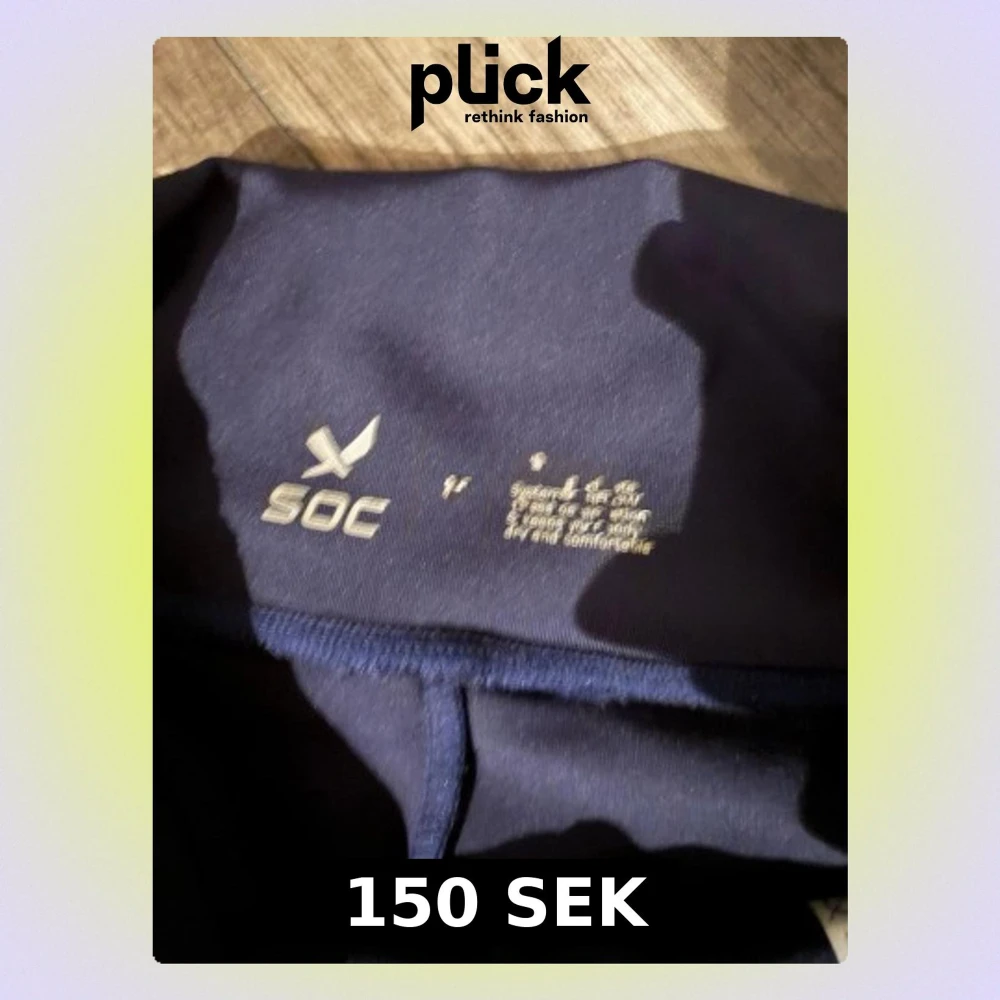 Snygga mörkblå träningsbyxor från SOC med bred midja och raka ben. Materialet är mjukt och stretchigt polyester som andas och håller dig bekväm. Perfekta för gymmet eller andra sportaktiviteter. Diskret logga på höften och minimalistisk design. Storlek S.