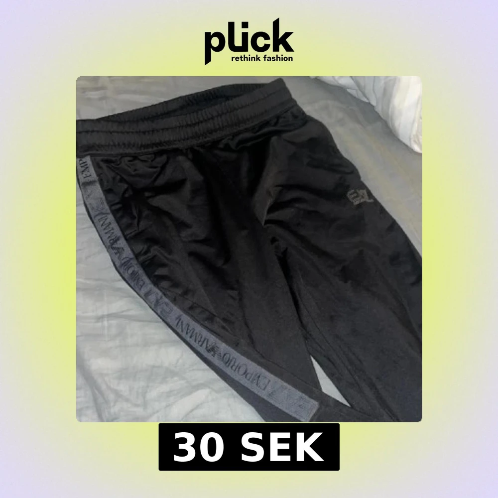 Svarta mjukisbyxor från EA7 Emporio Armani med elastisk midja och logga längs sidorna. Byxorna har en sportig look med smal passform och är tillverkade i ett mjukt, syntetiskt material som känns skönt mot huden. Perfekta för en chill och stilren outfit.