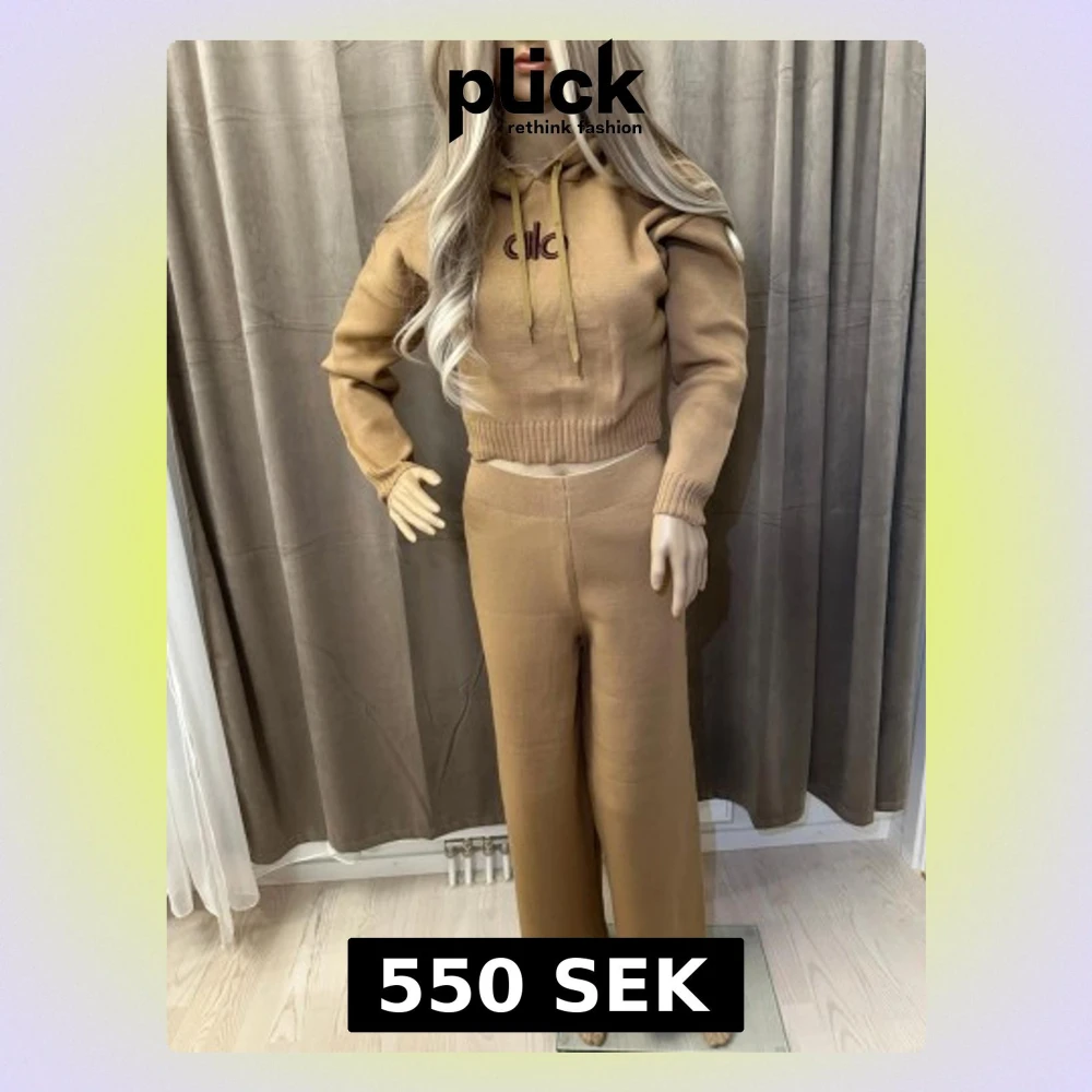Säljer ett par beige stickade byxor från Alo med breda ben och hög midja. Byxorna har en loose passform och är tillverkade i mjukt stickat material. Diskret Alo-logga broderad vid benslut. Perfekta för chill och avslappnade dagar.