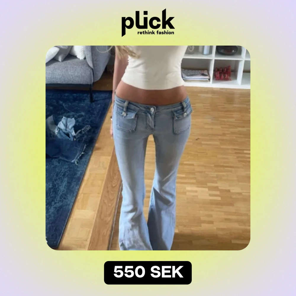 Ljusa lågmidjade bootcut jeans som är jättesnygga men tyvärr inte kommit till användning därför i jätte bra skick Innebenslängden är 85 och midjemåttet 34💓💓💓
