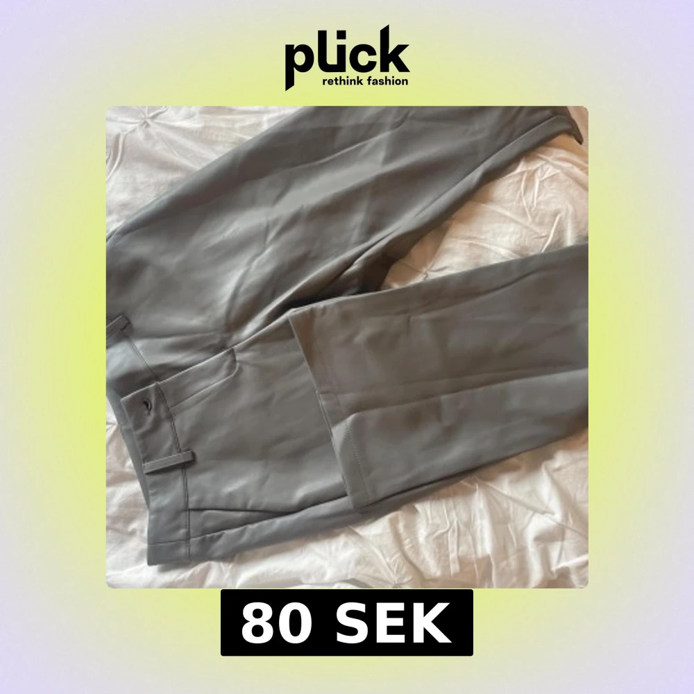 Säljer ett par gråa skinnbyxor från Desina by Si med normal passform och raka ben. Byxorna har klassisk midja, knapp och dragkedja framtill samt diskreta fickor. Perfekta för dig som vill ha en stilren look med edge.