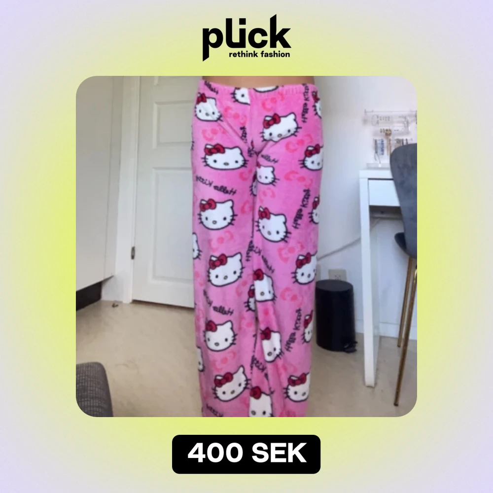 Low waist Hello Kitty pyjamas byxorđ SĂ€ljer nu mina Ă€lskade hello Kitty pyjamas byxor dĂ„ dom Ă€r för korta för mig. De Ă€r omsydda till low waist och har inga defekter. StĂ„r inte storlek pĂ„ dom men de Ă€r ca 91 cm lĂ„nga.