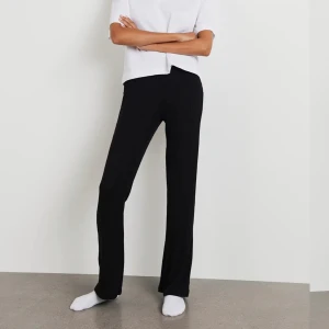 Svarta Skinnbyxor från Nelly  - Snygga svarta lågmidjade bootcut byxor med två knappar i midjan, en figurnära passform upptill och utsvängda nedtill. 🥰priset går att sänka något om man köper fort🥰storlek xs. Något slitna vid foten ”änden” men inget som märks