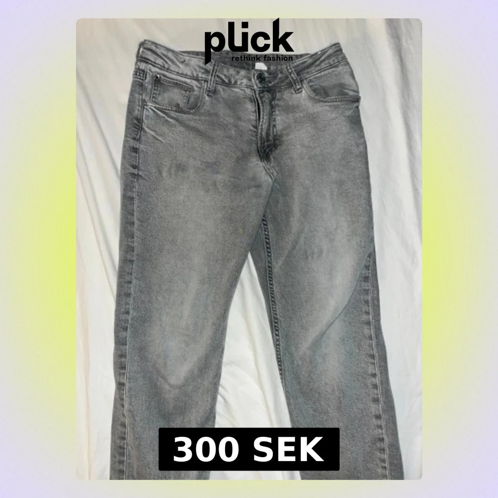 Snygga grå jeans med klassisk femficksdesign och rak passform. Jeansen har en knapp och dragkedja i midjan samt bälteshällor. Materialet är slitstarkt denim och färgen är en cool, tvättad grå ton som passar till allt.