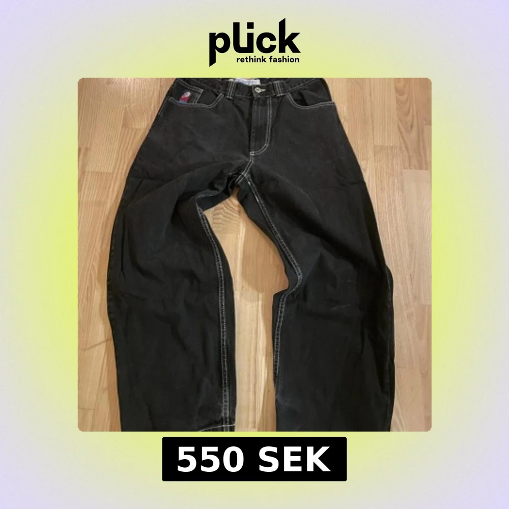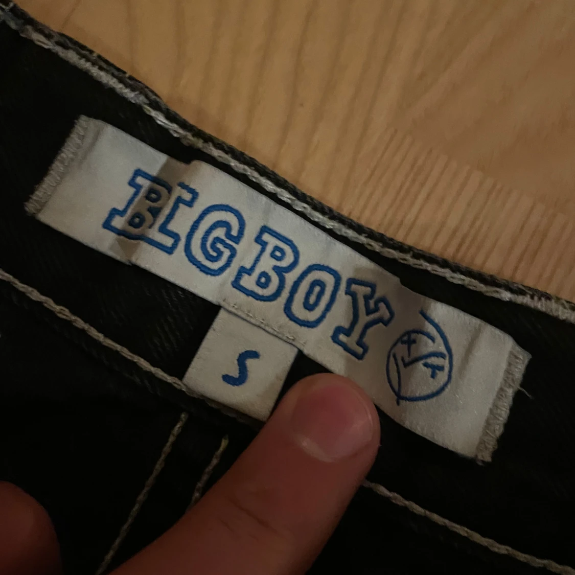 Svarta jeans från Big Boy med kontrasterande vita sömmar och en broderad figur på myntfickan. Jeansen har en loose passform och raka ben, klassisk femficksdesign och tydlig streetwear-vibe. Perfekta för dig som gillar baggy stil.
