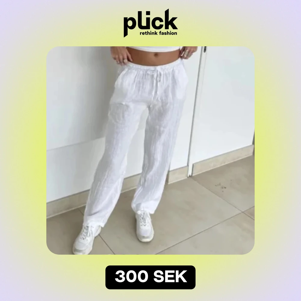 Säljer dessa linnebyxor från Design by si i storlek S, några små fläckar o defekter längst ner på byxorna (därav priset) men annars i bra skick bilder på defekterna kan skickas privat!
