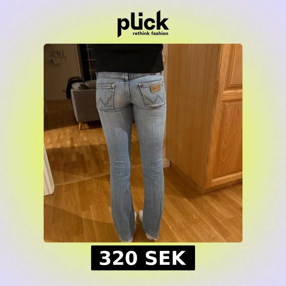 Snygga blå bootcut jeans med låg midja. Perfekta för en avslappnad stil. Så fina jeans som sätter sig så snyggt! Det ända är att dragkedjan är sönder men den är så liten att det inte syns. Midjemått Rak över = 36-37cm Runtom = 76-78cm sänker priset
