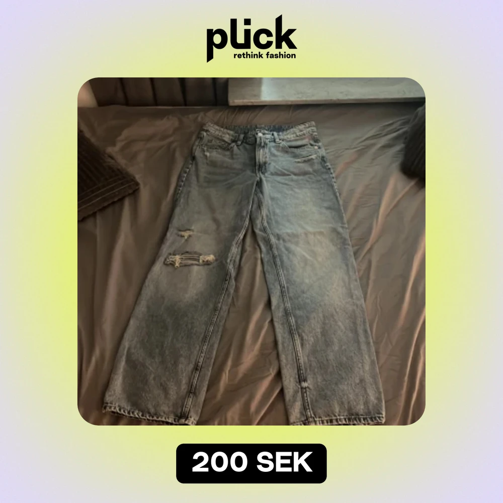 Dessa jeans är använda en gång och är köpta från hm. Dem är i storlek 36 och är baggy och låg midjade.