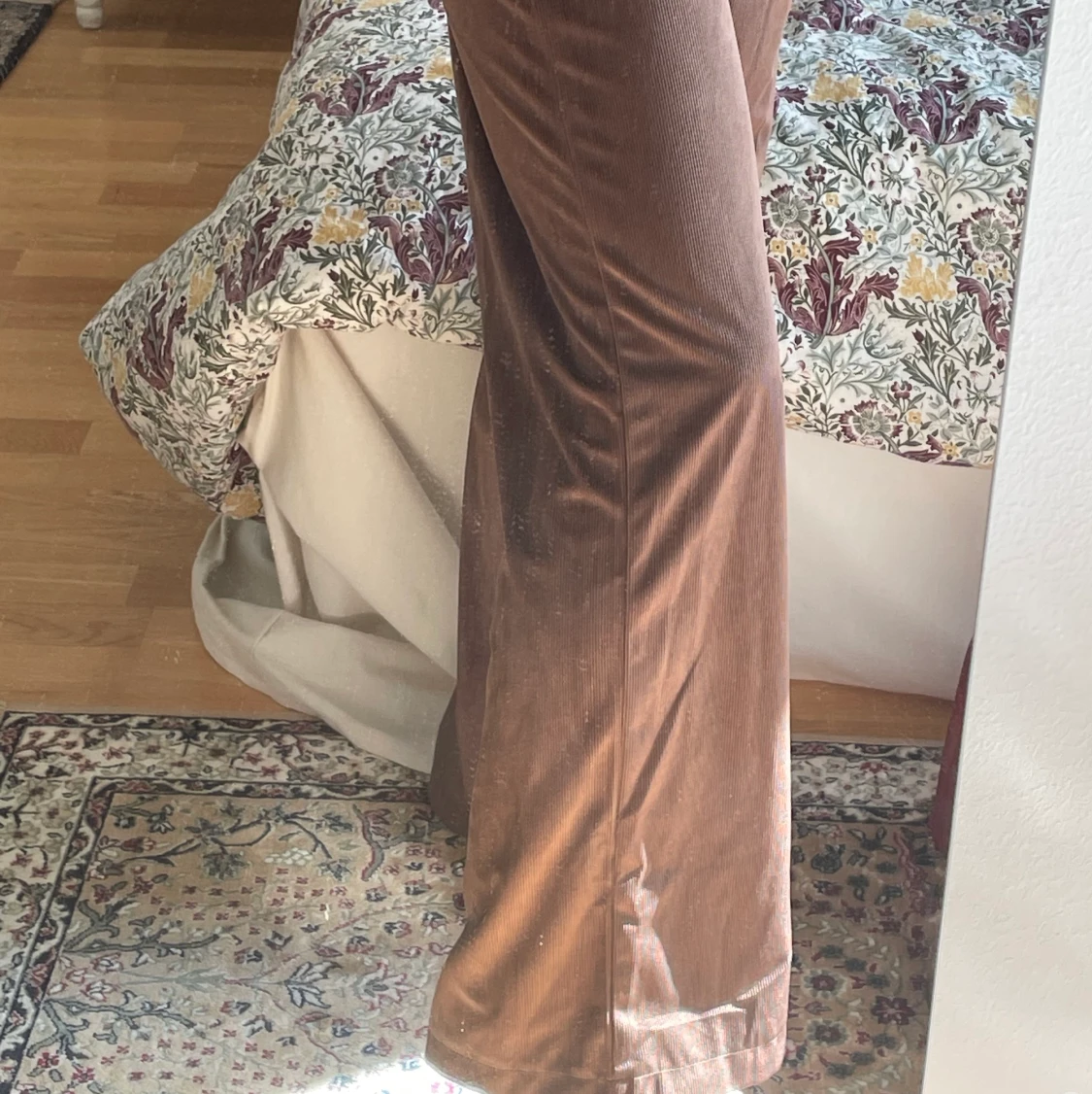 Säljer ett par bruna byxor! Helt oanvända från shein! De var inte riktigt min stil🙁 sitter perfekt och slutar vid marken på min som är 165! Skriv för bättre bilder🤡 frakt tillkommer❤️❤️