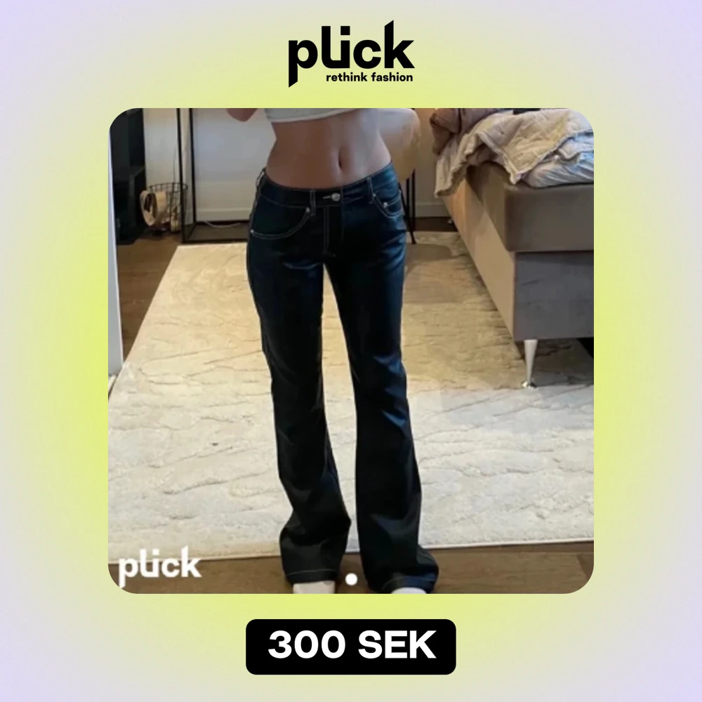 Säljer dessa skinnbyxor med coola vita sömmar! Säljer tyvärr för de är lite lite korta på mig som är 167 med långa ben. Påminner om eytys skinnbyxor. Bilder är från tidigare ägaren.