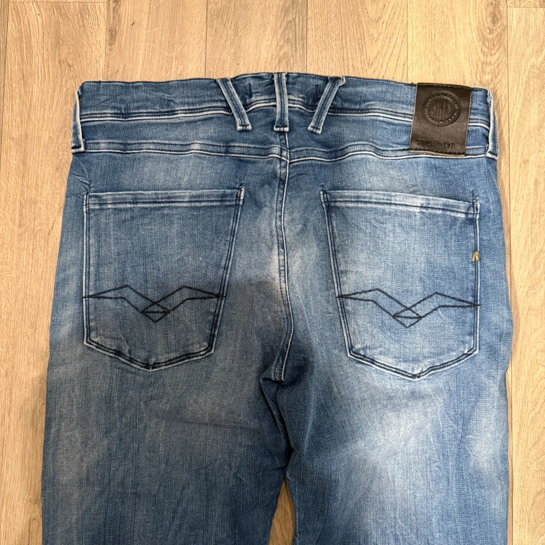 Sjukt feta blåa Replay Anbass Hyperflex jeans i storlek W32/L32. Mått: Midja - 40cm, Benlängd: 104,5cm. Hör av dig vid funderingar!