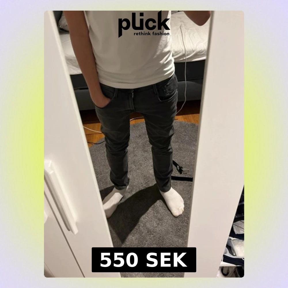 Säljer du ett par snygga jeans från Replay i modellen anbass - slim fit passform. Storlek W/28 L/30- de är i bra skick. Är öppen för prisförslag 🙌
