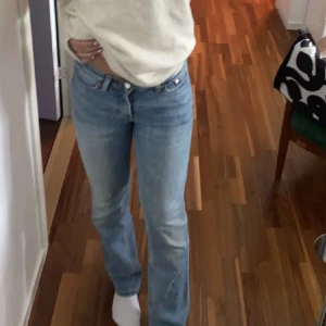 Säljer dem här lågmidjade jeansen som är köpte här på plick för har ett par till exakt likadana❤️ dem är lågmidjade straight jeans från weekday! Jätte bra skick! Passar en XS
