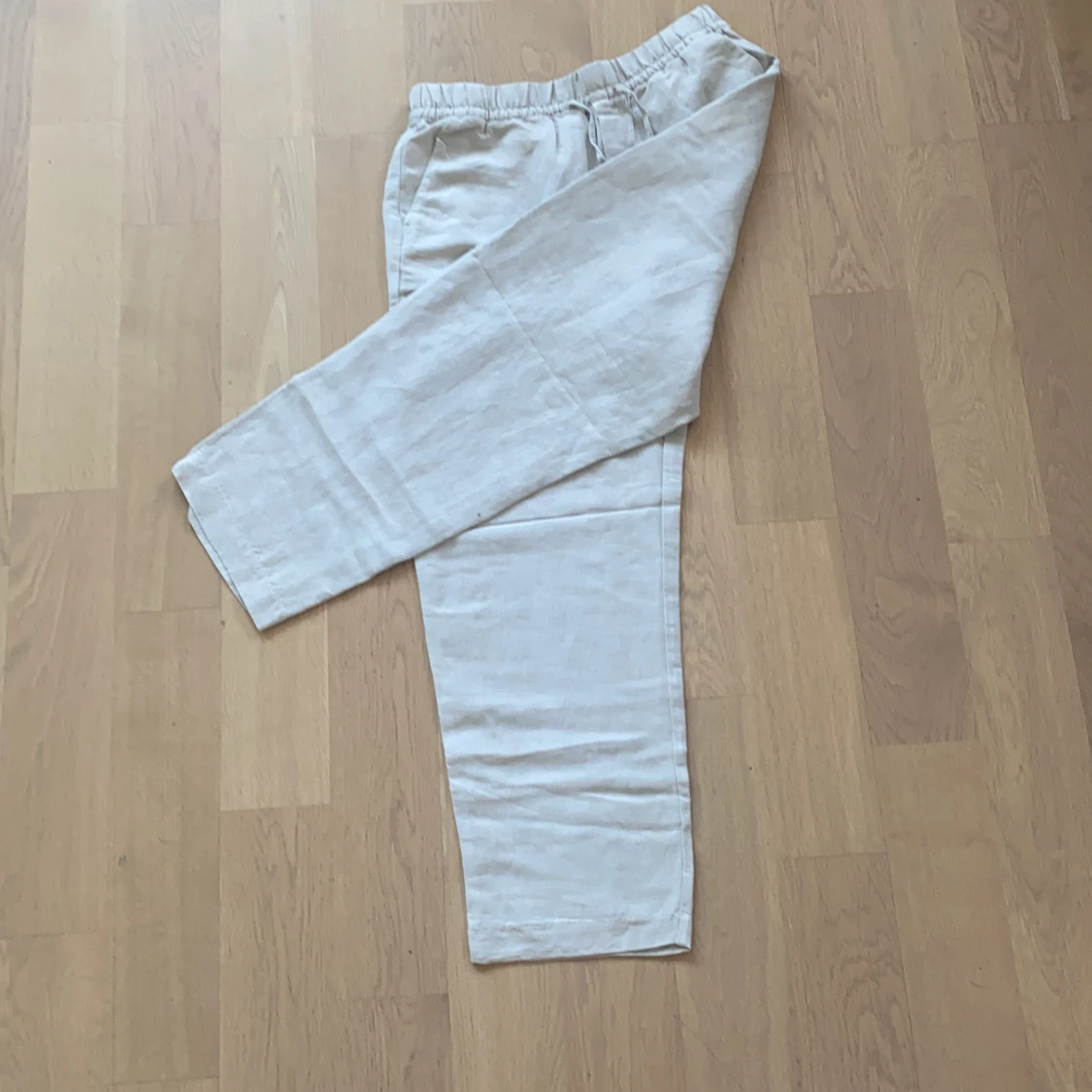 Linnebyxor  - Säljer dessa jättefina beigea linnebyxor från Hm. Köpte de för nått år sen men de har tyvärr inte kommit till användning eftersom de är lite korta på mig. Jag är 166 cm lång. Om ni har några frågor kan ni skriva privat till mig.💕