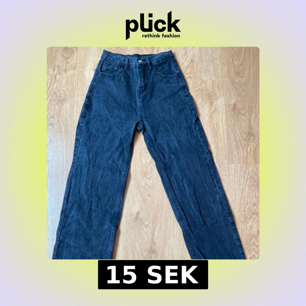 svarta jeansbyxor med hög midja och rak passform. Köpt i Thailand och använda typ 4 ggr. Innerbenslängden är 70cm. Passar stl S