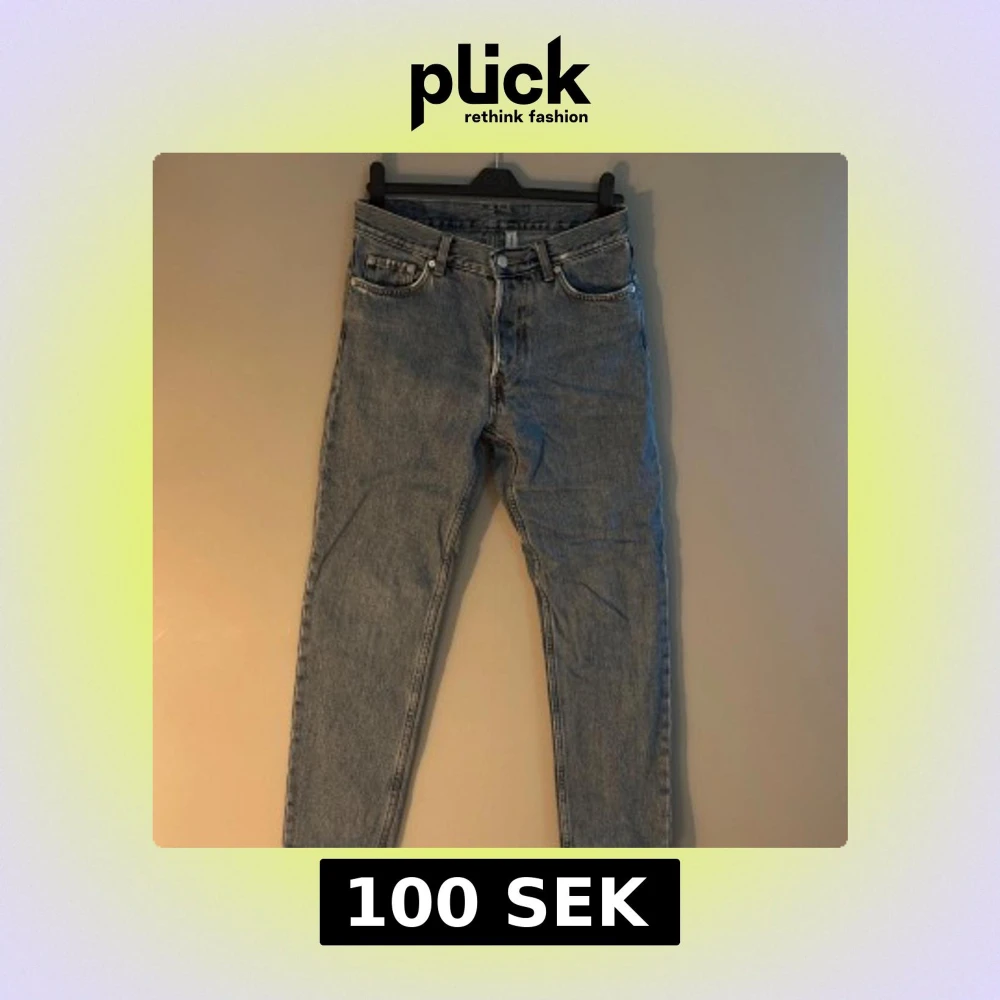 Säljer ett par jeans från weekday i modellen Barrel. De är i storlek 27/30. Över höger bakficka är de lagade med en sömn annars är de i fint skick. Skulle liknas vid S