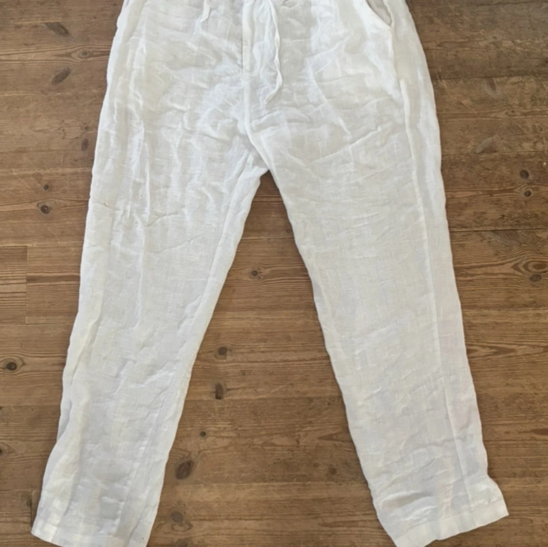 Snygga och luftiga vita linnebyxor från Akry med elastisk midja och snörning. Sjukt snygg vit färg som utviker att man ser igenom (som många söker i linnebyxor). Dem är aldrig använda och är såklart i bra skick, pris kan diskuteras!!