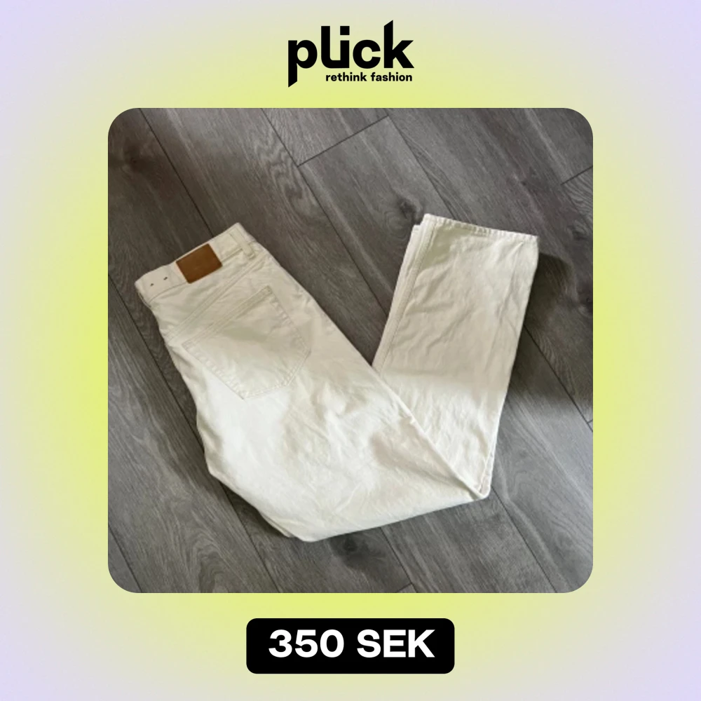 Tja, Har även dessa oanvända jeans i modellen ”Space” från Weekday! Storlek 31/32 och sitter sjukt bra på någon mellan 178-185 Kommer i gräddvit/beige ton och är galet snygga nu lagom till sommaren!