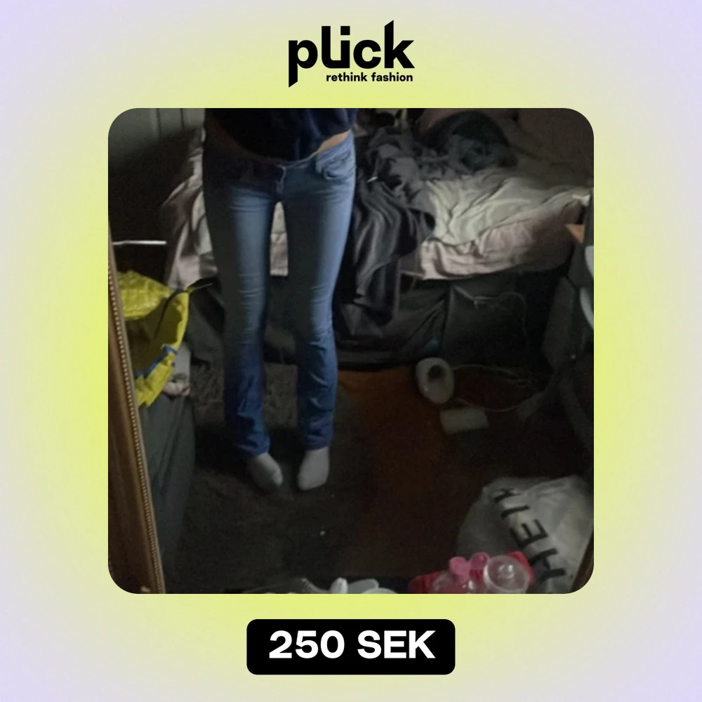 Ett par jättefina ljusblåa bootcut jeans i bara skick! Står inga storlekar men jag brukar ha M, och jeansen sitter bra men tajt på mig. Jag är 179 för längd referens💕