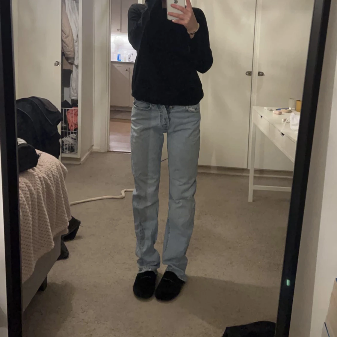 Säljer dessa trendiga mid rise straight jeansen från Zara då dem är lite små och kommer inte till användning längre. Skriv för mer detaljer och fler bilder. ( är 163 cm lång )