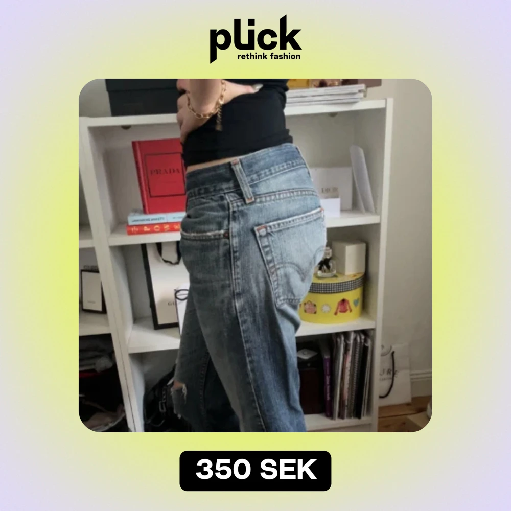 Lågmidjade levis jeans med hål. Jätte fina men kommer tyvärr inte till användning. Jag är 170 och de passar mig bra i längden. Samt brukar ha s i jeans och de passar mig bra. Skriv för fler bilder!!🫶