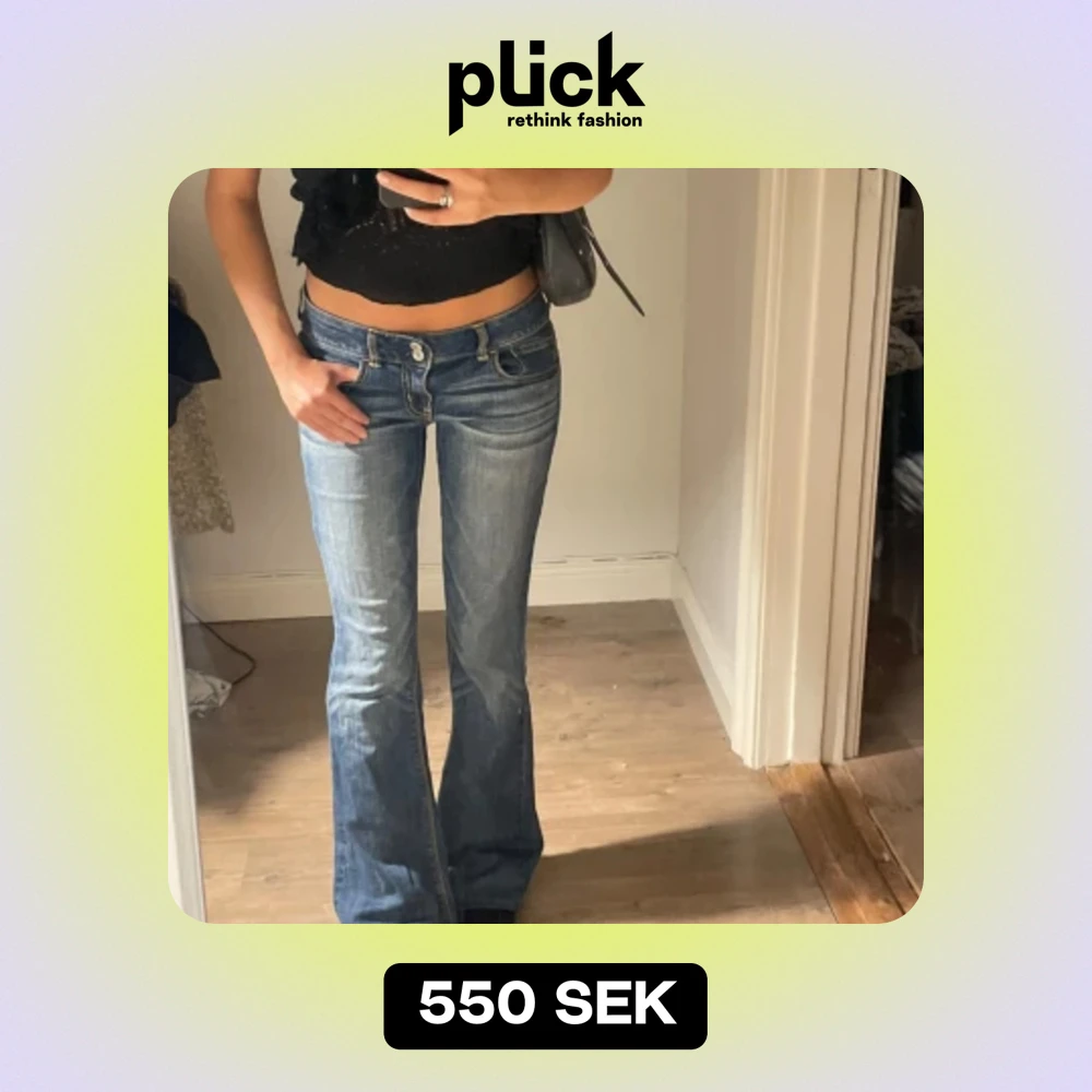 Säljer ett par ursnygga lågmidjade bootcut jeans ifrån American eagle. Hör av dig för frågor!💕 Mått: Innerbenslängden: ca 80cm Midjemåttet: ca 37-39 cm