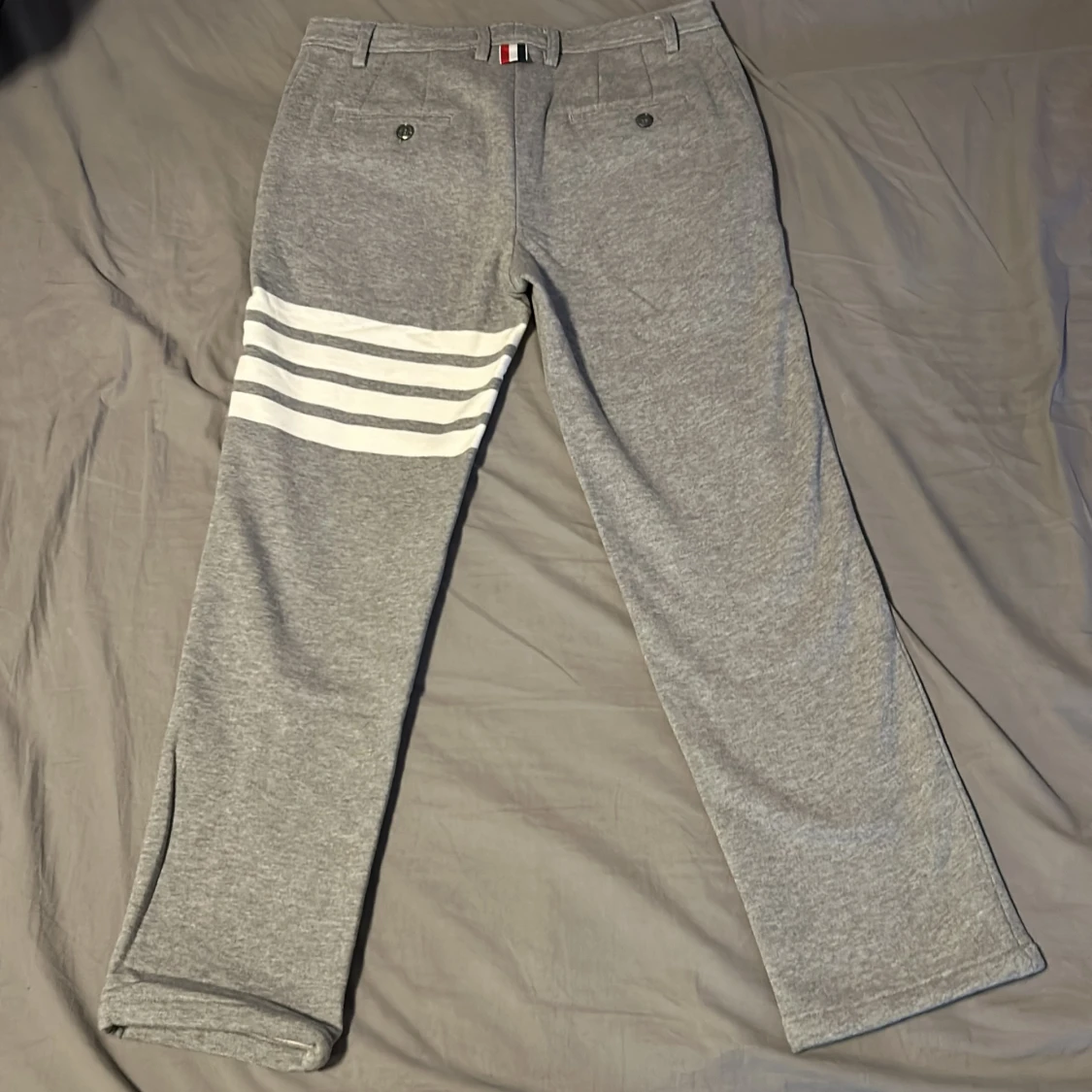Snygga Thom Browne byxor i färgen grå. De har en rak passform och är tillverkade i ett mjukt material. Byxorna har hällor för bälte. Storlek 0=Xs