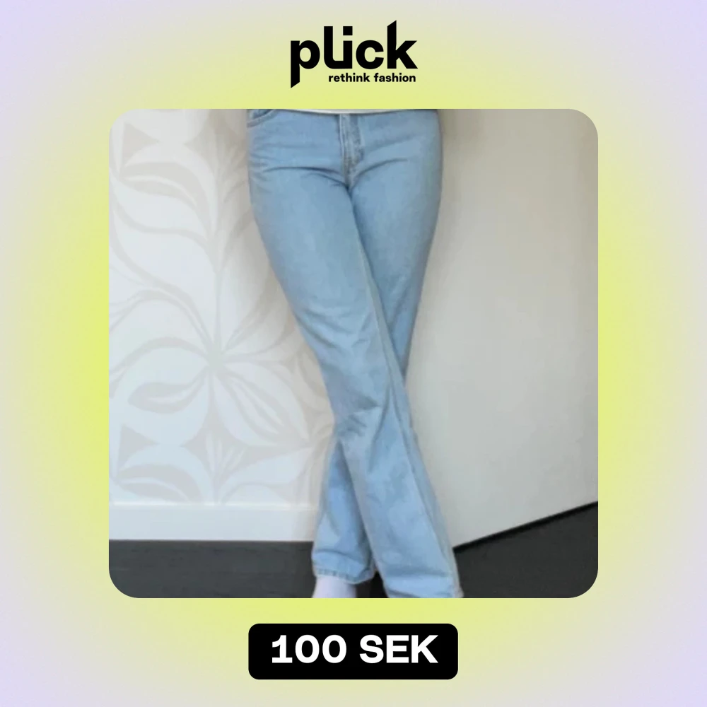 Säljer ett par ljusblåa jeans från Stradivarius. Säljer dem då de är för små. Innebenslängden: 79 cm Hela byxans längd: 106 cm