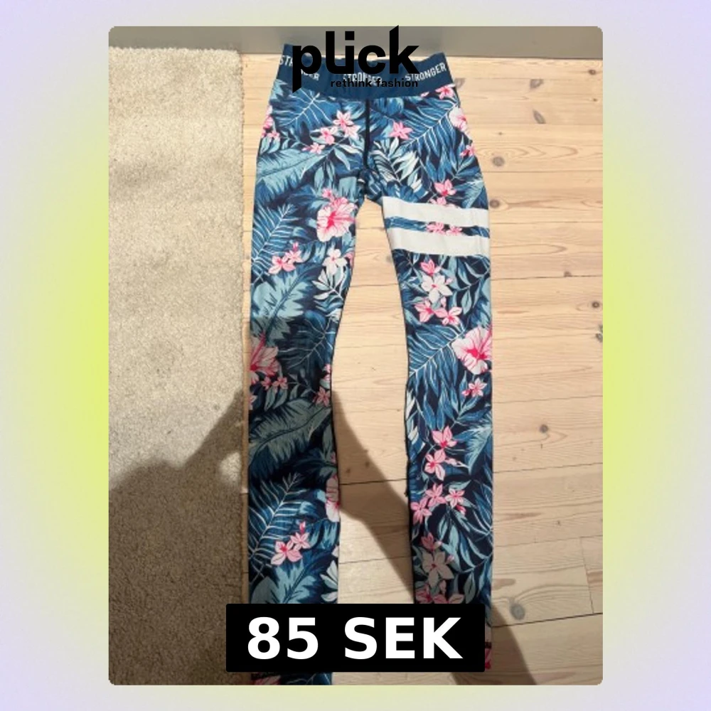 Snygga leggings från Stronger i storlek XS med tropiskt blommigt mönster i blått, rosa och vitt. Stretchigt material i polyester och elastan. Perfekta för träning och ger en skön vibe till din outfit. Passar från 10-13 år.