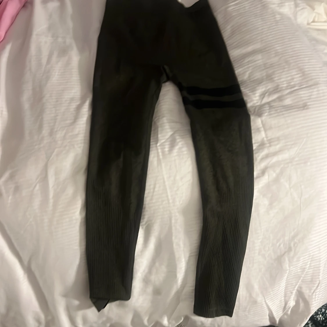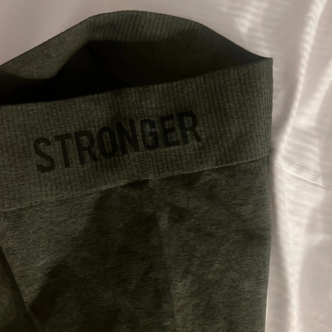 Snygga mörkgröna tights från Stronger med hög midja och ribbade detaljer. Perfekta för träning och har en diskret logga i midjan. Materialet är stretchigt och bekvämt.