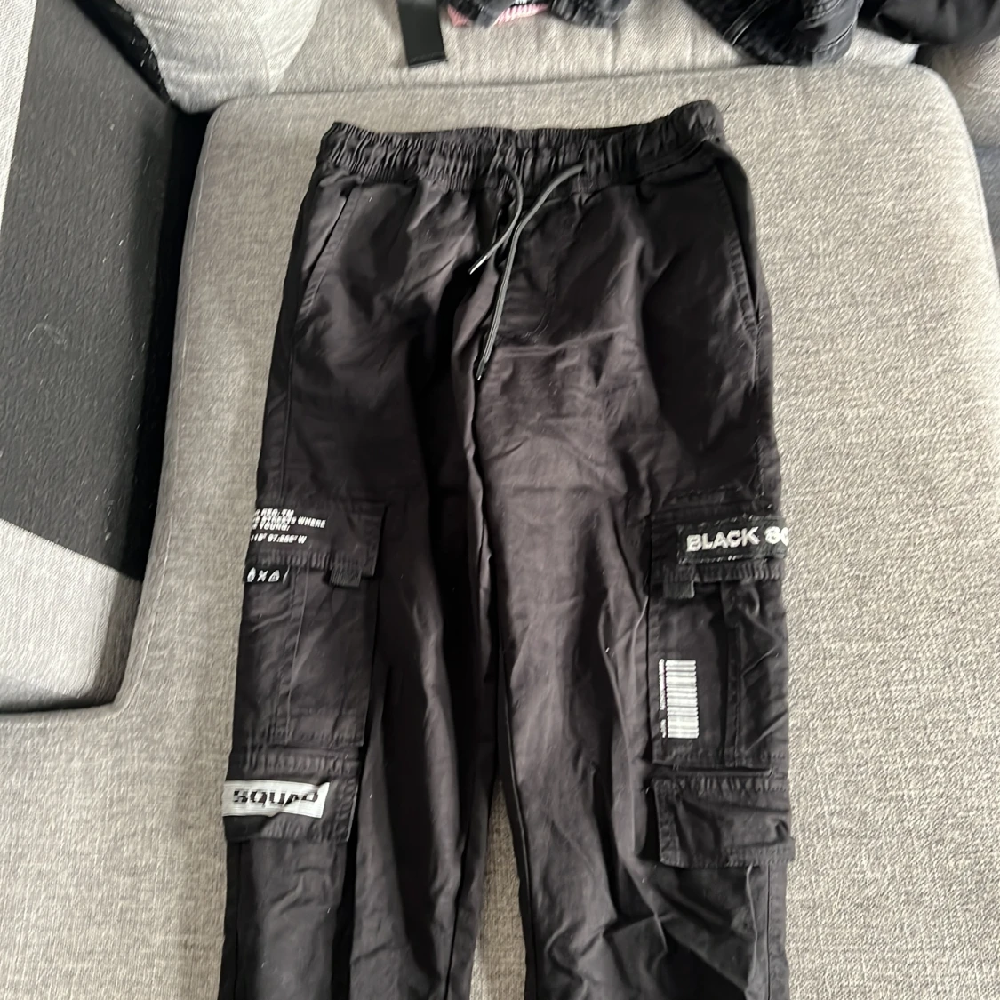 Svarta blacksquad byxor. Fickor på sidorna av låren. Använd ett par gånger men i bra skick.