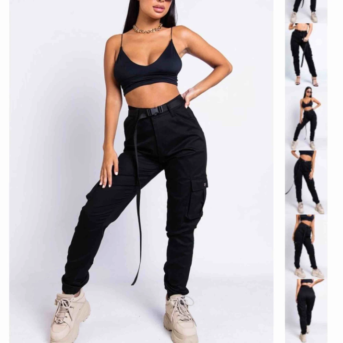 Säljer dessa svarta cargopants från madlady som bara är använda ett fåtal gånger. Skärp ingår inte. Strl S. Möts i slussen eller så tillkommer frakt.