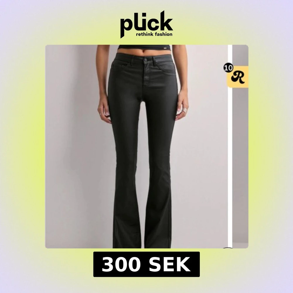 Snygga svarta bootcut skinnbyxor. Byxorna har en stilren look med knapp och dragkedja framtill. Dem är i nyskick och inte använts mycket.