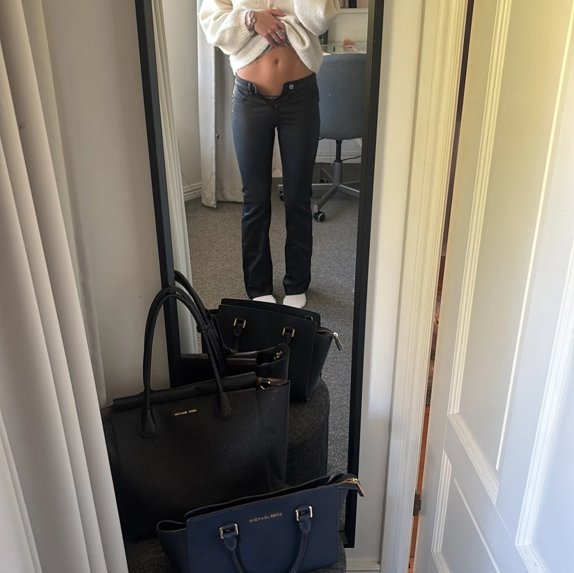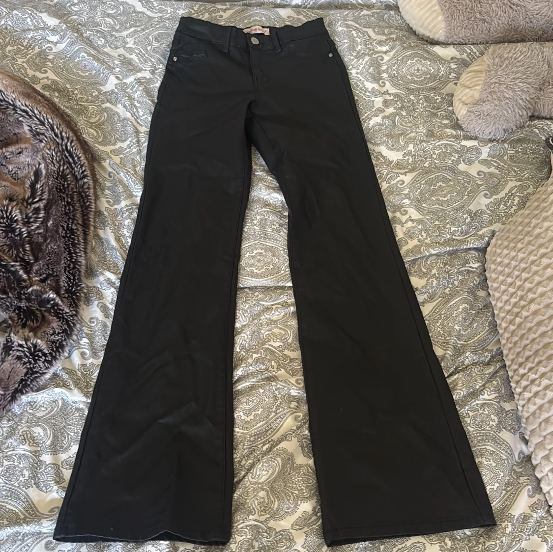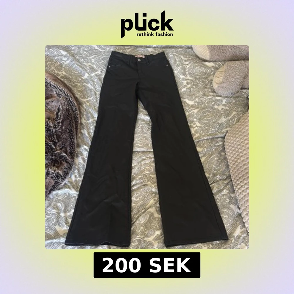 Säljer ett par svarta bootcut byxor från ONLY i storlek XXS/32. Byxorna har låg midja och klassisk femficksdesign. Snygg passform med utsvängda ben och tillverkade i ett mjukt bomullsmaterial med lite stretch. Perfekta för dig som gillar en stilren look. Säljer då dom är för småååå!!!