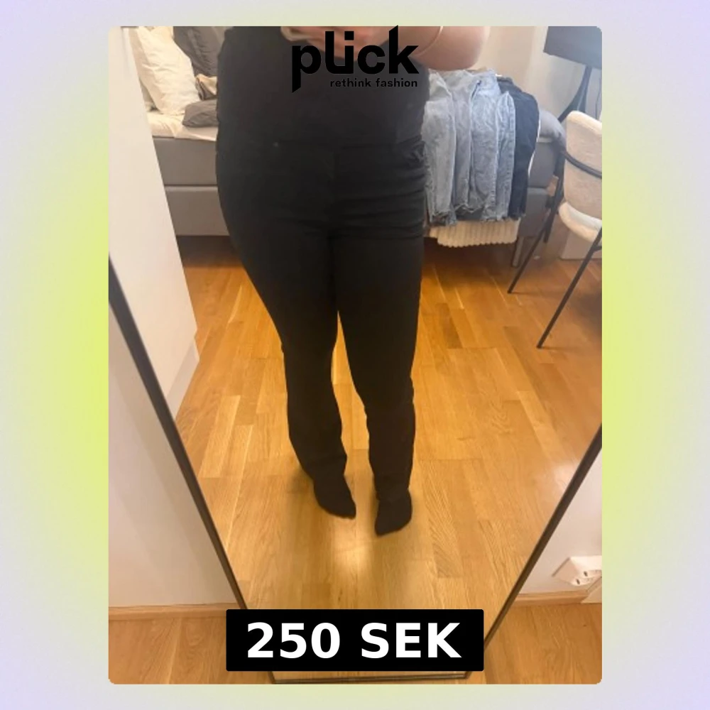 Säljer ett par svarta bootcut byxor i storlek M/32. De har en klassisk femficksdesign och är tillverkade av en mjuk blandning av tencel, polyester och bomull. Snygg passform med lite utsvängda ben som ger en cool siluett. OBS! Rekommenderar till någon som är under 163cm lång, då dom är för korta på mig.💕