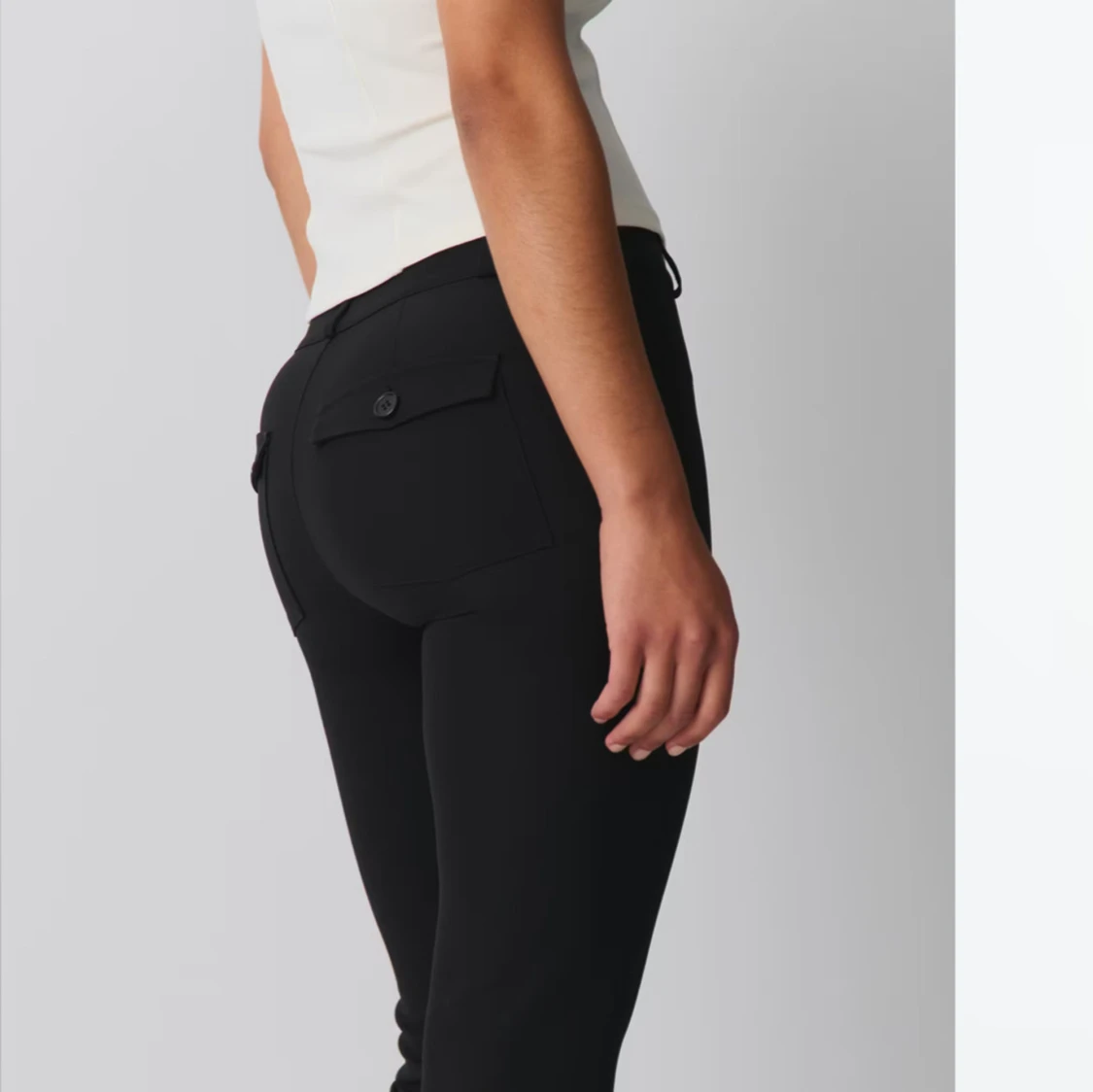 Snygga bootcut kostymbyxor med låg midja från gina. Knappar bak på fickorna och en jättefin passform, perfekta för både vardag och fest men passar ej mig därav säljs dem. Endast använd 1 gång💕