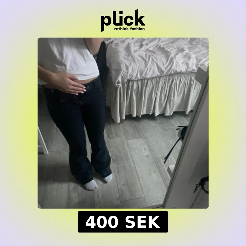 Snygga mörkblåa jeans från wrangler. Dom är lågmidjade och bootcut.