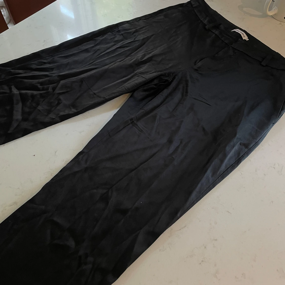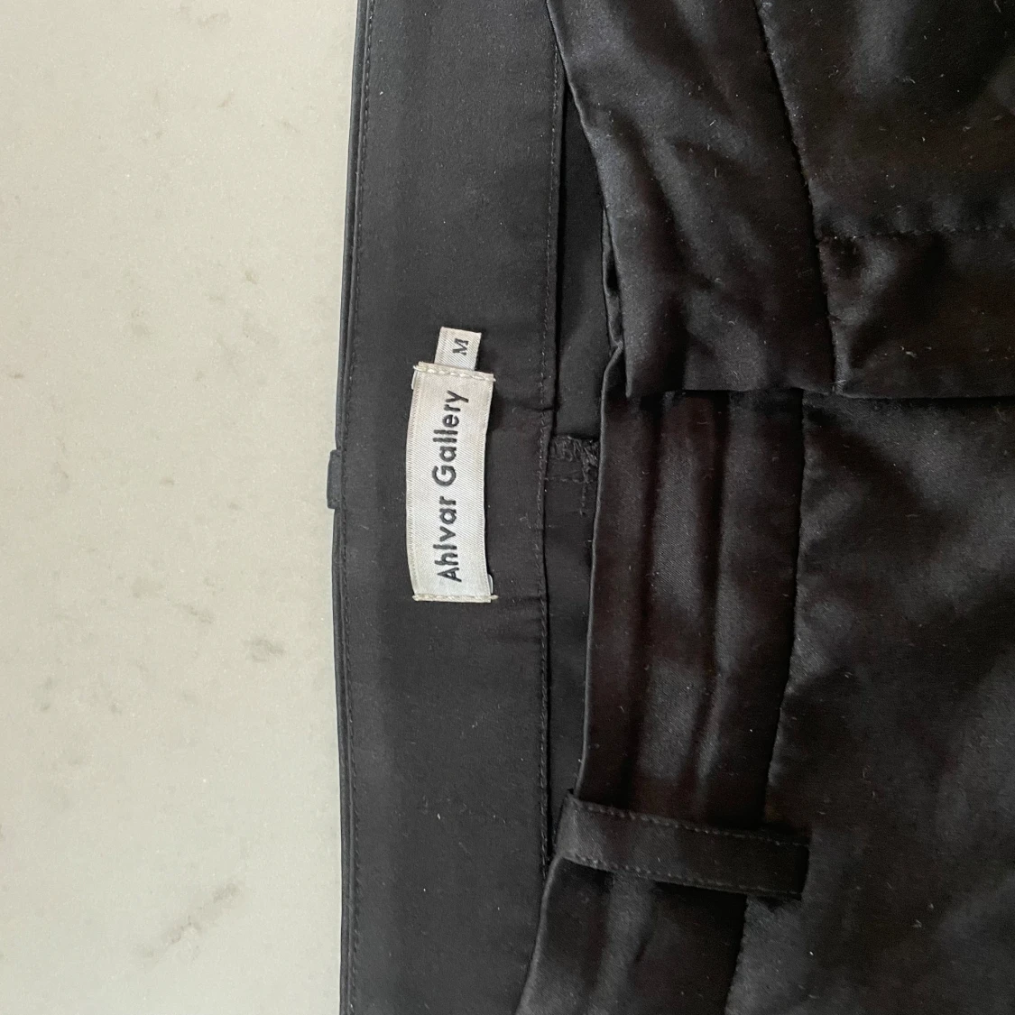 Säljer ett par stilrena svarta byxor från Alvar Gallery. De är i storlek M och har en klassisk design med en rak passform. Perfekta för både vardag och festliga tillfällen!