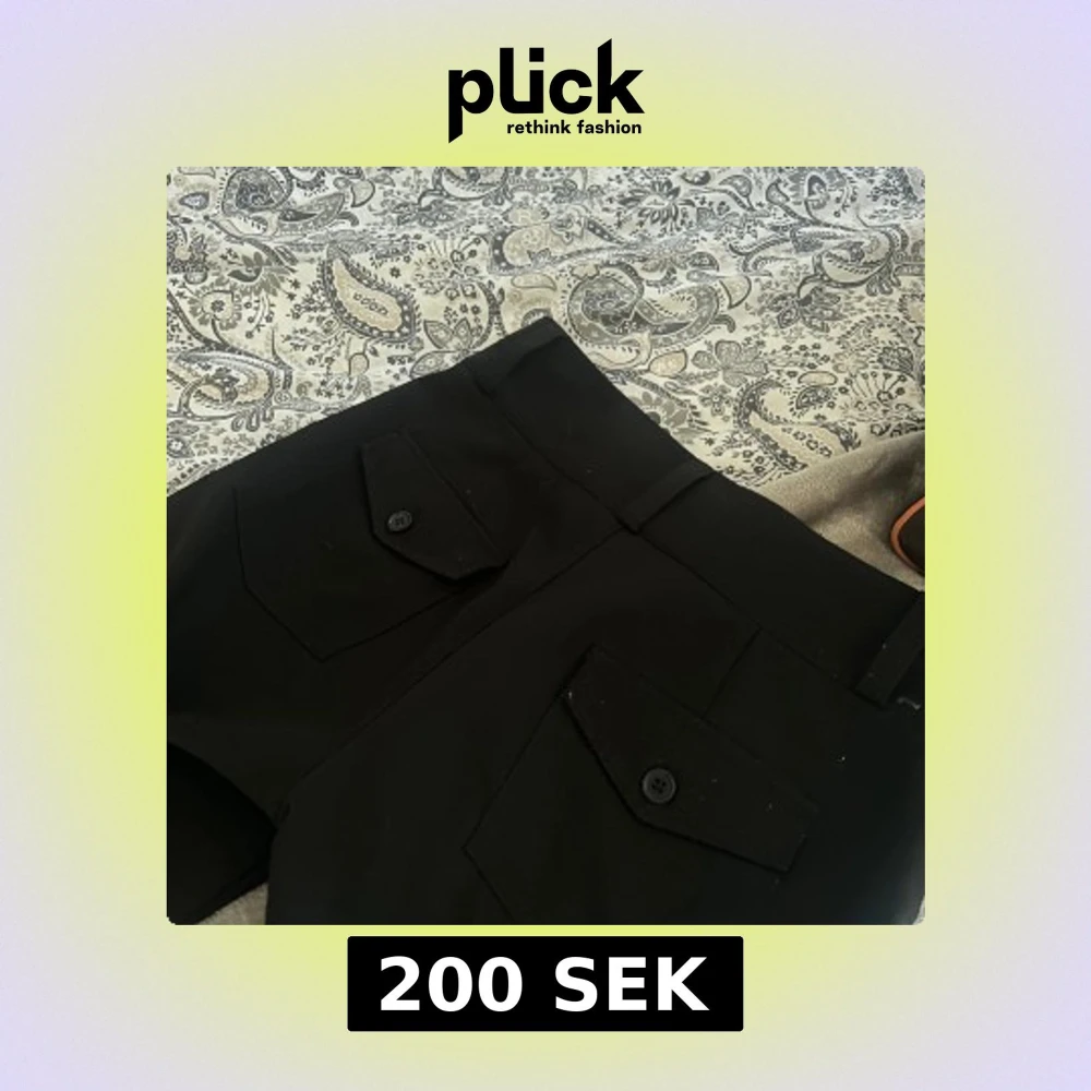 Snygga svarta kostymbyxor med mid waste men skulle ändå kunna säga att dem är som low waste och knappar framtill och där bak. Perfekta för en stilren look. Byxorna har en tight passform och är tillverkade i ett bekvämt material.