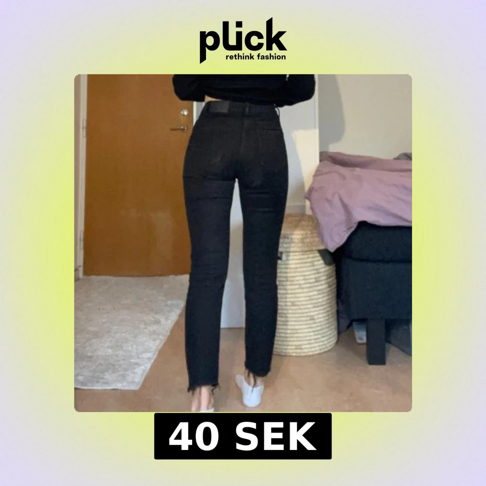 Snygga svarta jeansbyxor med hög midja och tight passform med rak form längst ner. Aldrig använda.